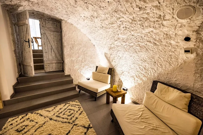 Pároknak tervezett présház saját wellness pincével — finn szaunával, merülőkáddal és pihenő részleggel.