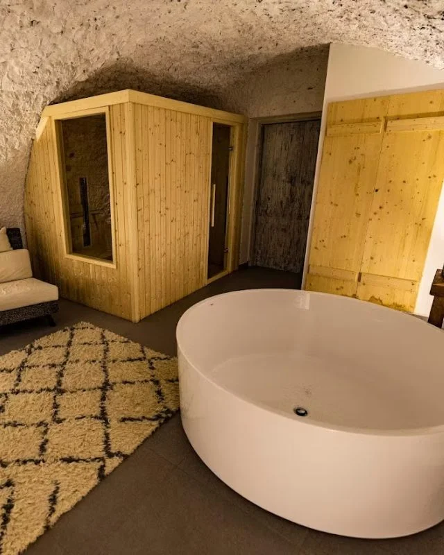 A 6. és 7. présház vendégei egy közös wellness pincét használnak — 3 személyes infraszauna, merülőkád és pihenő részleg, kizárólag e két ház lakói számára.