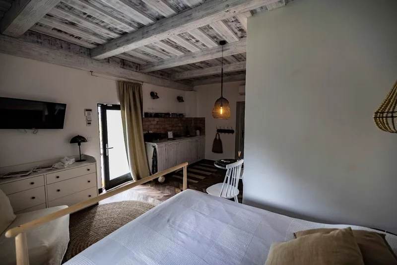 A birtok egyik legkisebb, leghangulatosabb présháza — franciaágy, kis nappali, és minden, ami a valódi kettesben töltött időhöz kell. Saját kis előkerttel, csend – ennél többre nem is lesz szükségetek.